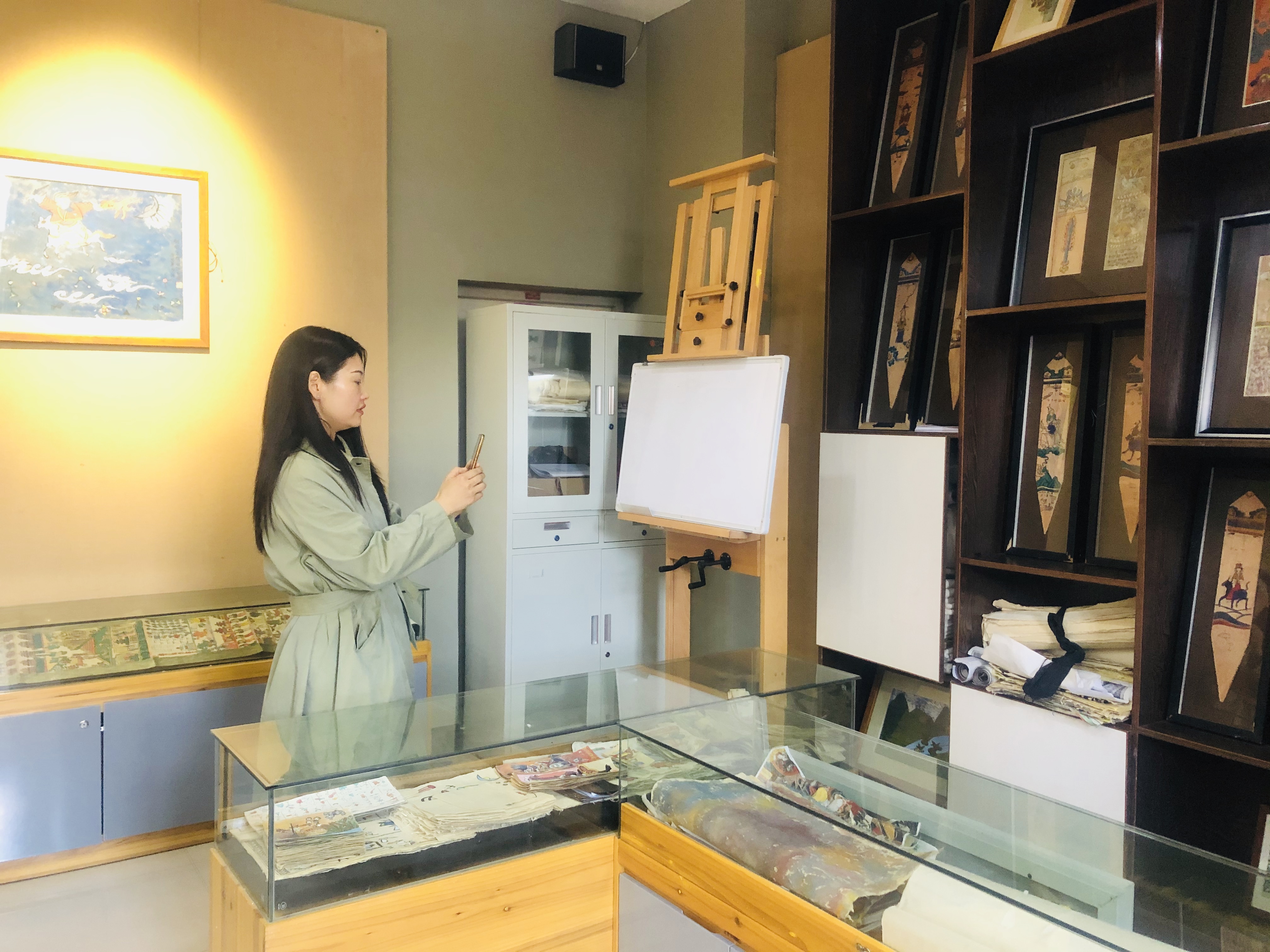 公开课结束后,马丽老师参观了艺术学院滇西北民族传承基地工作室,对丽江东巴文化产生了浓厚兴趣。结合我院特色专业发展,提出了特色民族文化与专业建设联系的宝贵意见。