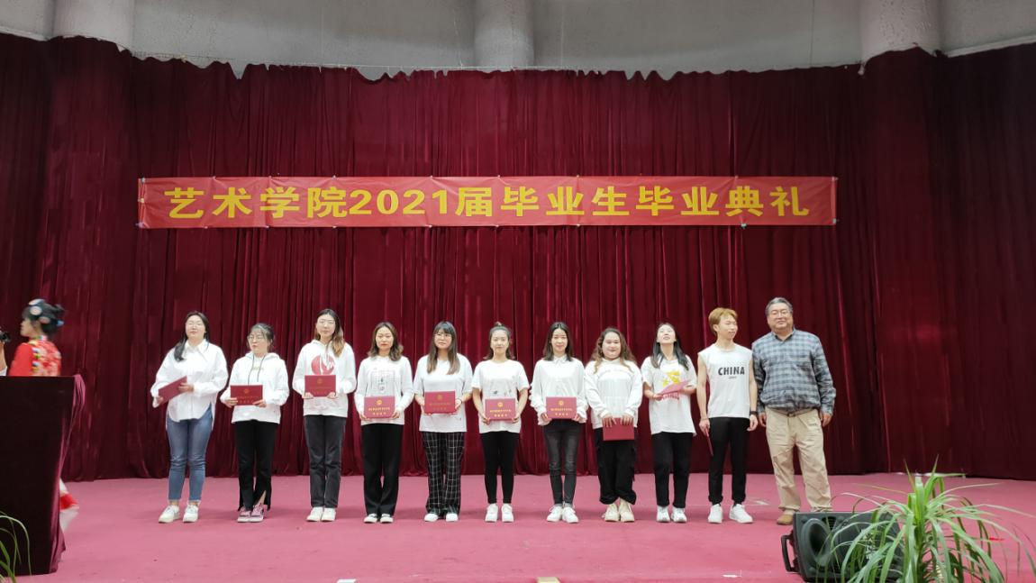 毕业典礼在庄严的国歌声中拉开了序幕,在同学们热烈的掌声中,和爱东院长、王飞书记、赵伟副院长分别上台进行了致辞。后由毕业生代表2018级音乐教育专业的李建祥同学上台进行了精彩的发言。后一项议程是由副书记和必昌选布2021届符合毕业的毕业生名单,共179名学生获得毕业证书,并由院长给179名学生颁发毕业证书合影留念。