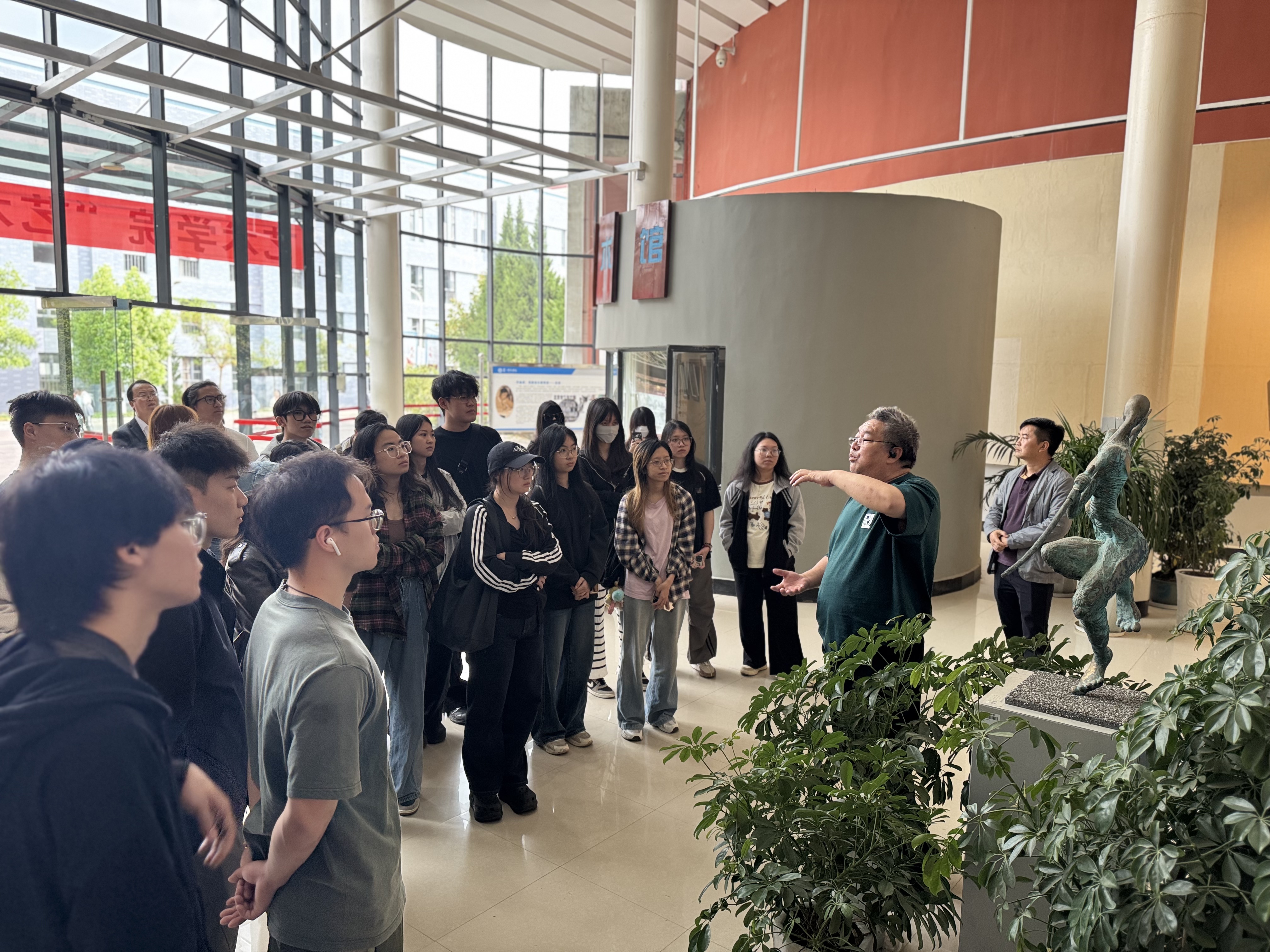 2025年5月13日下午,广州华商学院创意与设计学院师生一行109人,在院长助理黄功翔的带领下前来我校开展考察学习。