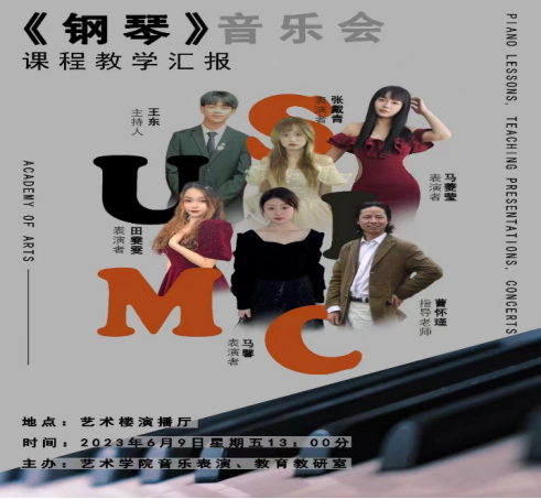 2023年6月9日,在艺术楼演播厅成功举办了钢琴课程教学汇报演出音乐会,本次音乐会是由艺术学院音乐表演教研室、音乐教育教研室主办,由曹怀瑾老师钢琴小组的同学做汇报表演。