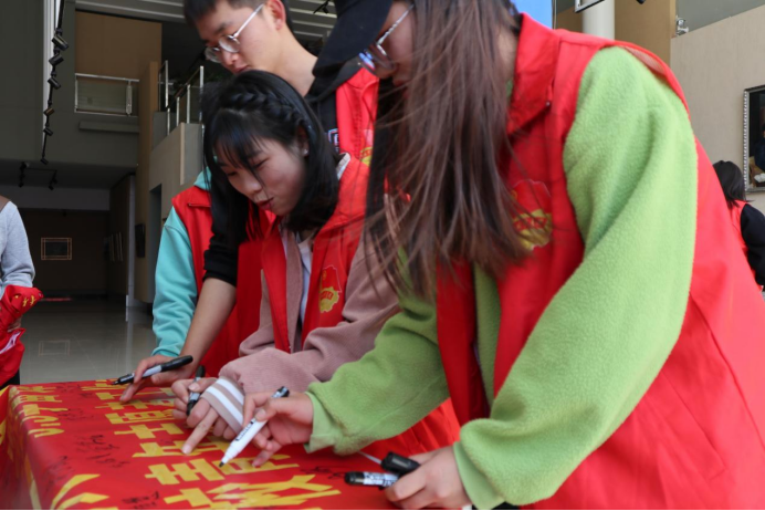 活动结束后,各位志愿者纷纷在横幅上签下自己的名字,呼吁更多地同学加入到无私奉献、全心全意为人民服务,践行雷锋精神的队伍中来。“人的生命是有限的,可是,为人民服务是无限的,我要把有限的生命,投入到无限的为人民服务中去。”生活中,雷锋不是英雄,只是将一件件小小的好事坚持做下去的普通人。学习雷锋也不仅仅是雷锋月的事情, 应该是每一个天的事。