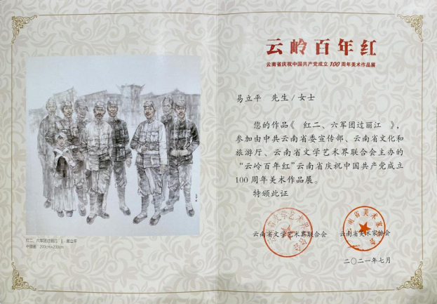 艺术学院党总支教师党支部易立平同志创作的中国画作品《红二.六军团过丽江》入选由云南省委宣传部、云南省文化和旅游厅、云南省文学艺术界联合会主办的“云岭百年红”云南省庆祝中国共产党成立100周年美术作品展。