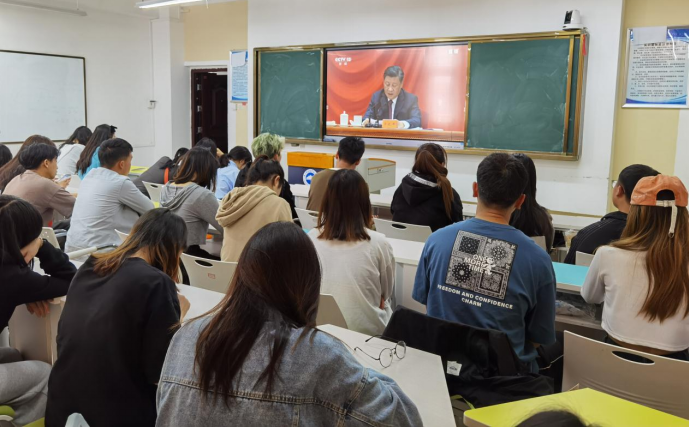 2022年5月10日上午10时,庆祝中国共产主义青年团成立100周年大会在北京举行。艺术学院组织广大青年观看大会盛况,认真学习习近平总书记重要讲话精神。学生们怀着激动的心情,聚精会神聆听习近平总书记发表的重要讲话,认真做笔记,现场反响热烈。