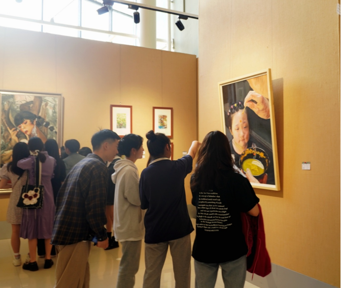 “这次展览的作品都是我们艺术学院各个专业的同学们自己设计的,有一些同学的作品他们也用来售卖,有人能够喜欢自己的作品并愿意买下它真的是一件很幸福的事!”艺术学院2019级工艺美术品设计班刘娅在采访中说到。
