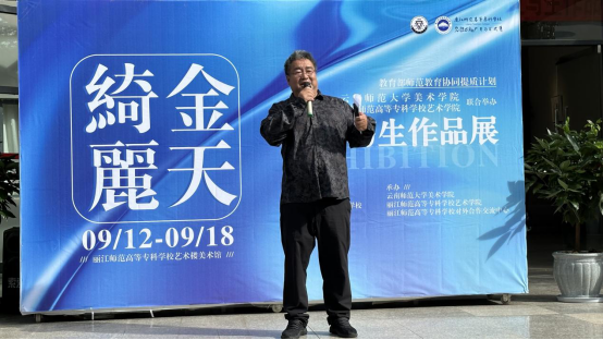 2023年9月12日上午“绮丽金天”——云南师范大学美术学院与丽江师范高等专科学校艺术学院联合举办学生写生作品展在丽江师范高等专科学校艺术学院开幕,展览时间将持续到9月18日。